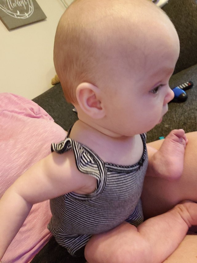 With everything going on, it took a few days to update about Kira sitting by herself for the first time. She was getting tired by the time I got the video, but I thought it was cute that this first was with Chris. Sitting up without assistance for the first time on 9/2/18 and recent pictures today with her in my lap without leaning or holding anything for support.